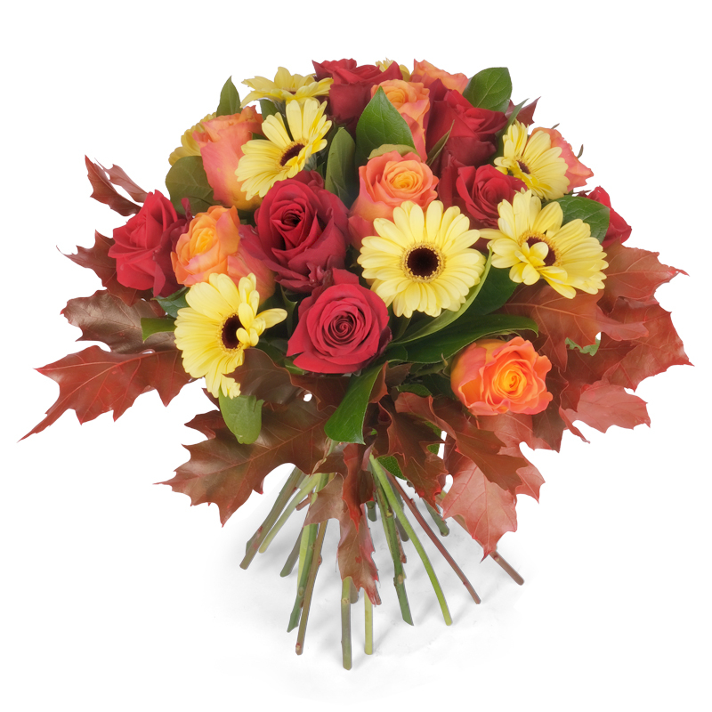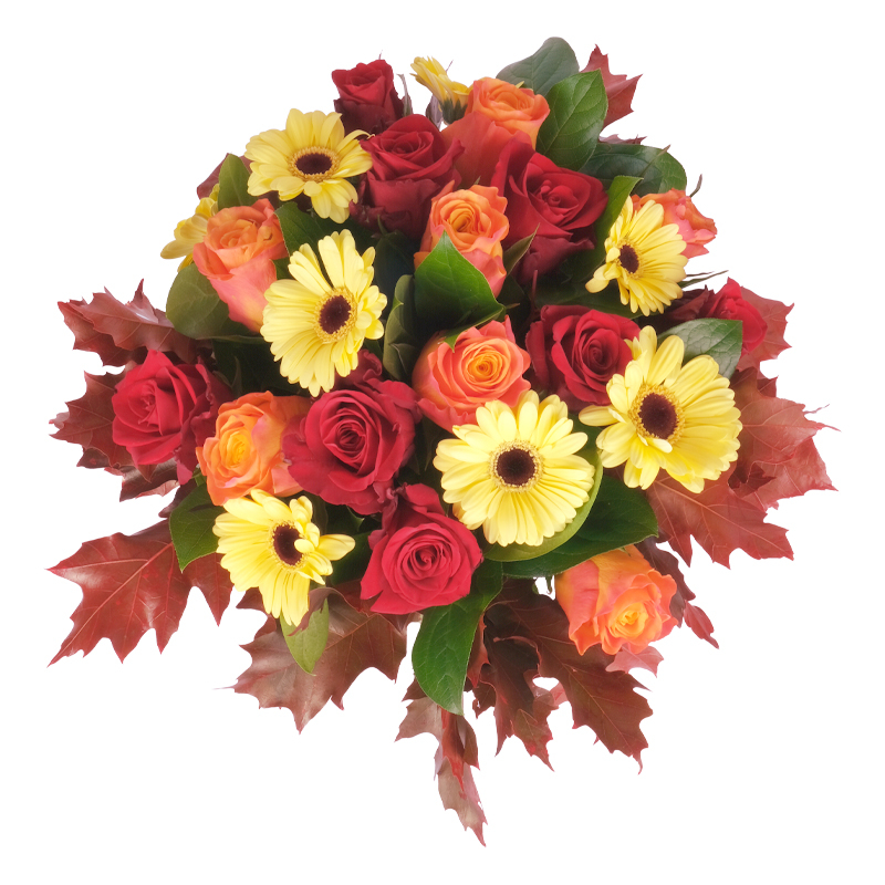 Bukiet o niepowtarzalnym uroku. Połączenie róż, gerber i liści klonu nadaje mu wyjątkowy charakter. Każdy kwiat podkreśla elegancję kompozycji. To doskonały wybór na każdą okazję. Prezent, który rozpromienia każdy dzień!